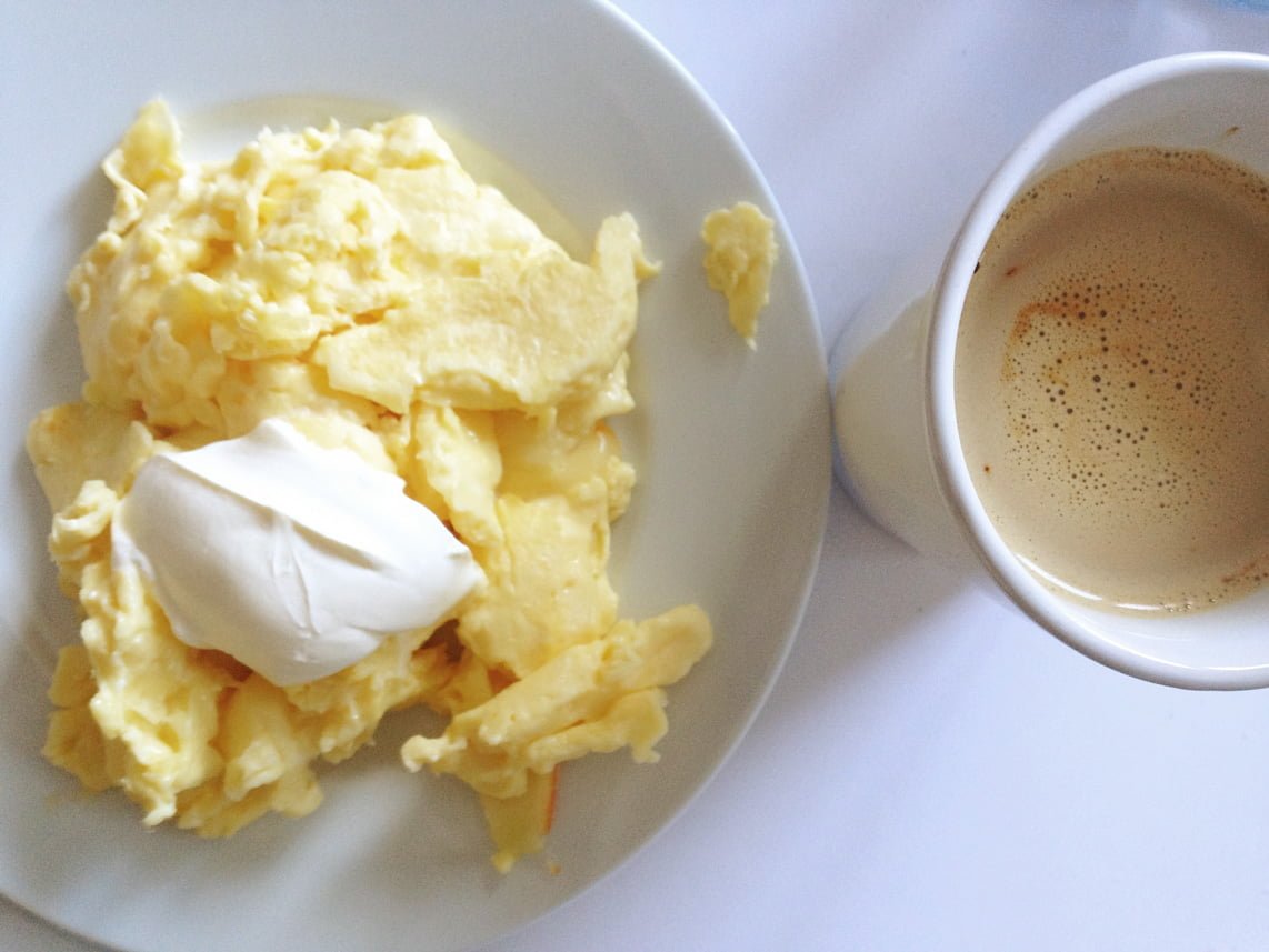 Så började dagen med sedvanliga ägg. Äggröra med ost, grädde och crème fraîche. Kan man ens tröttna?