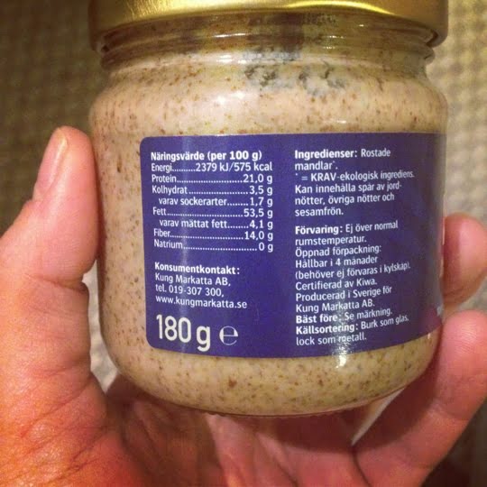 Köpte också denna glad i hågen – men upptäckte på detta sätt att jag kanske inte tål mandel. Fick fläckar på tungan och domnad känsla i munnen varje gång jag testade, så nu får burkarna stå. Kanske mandeln blir mer koncentrerad, har aldrig haft allergiproblem tidigare.