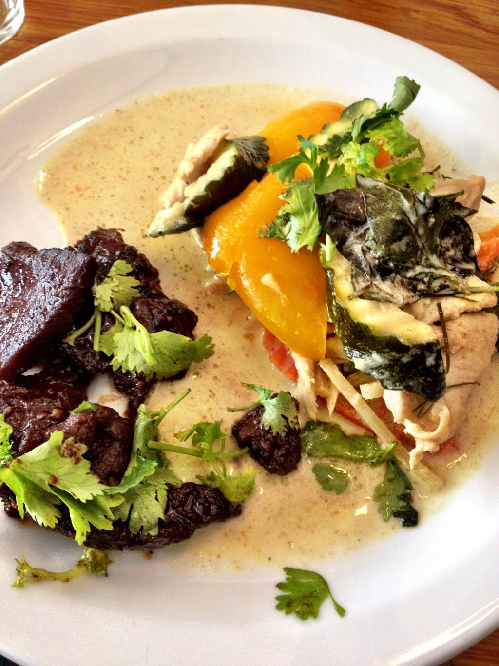 – Kyckling och grönsaker i grön curry och kokosmjölk