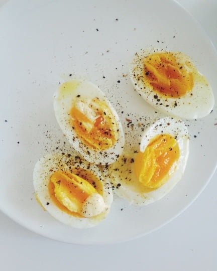 Äter själv ägg varje morgon, det som funkat bäst för mig är två kokta ägg (5-6min, inte helt fast gula) mosade med ca 15gram ekologisk bregott. (till det brukar jag ha en lite skål cream fresh med frysta blåbär, havtorn, nöter och frön. + en kopp kaffe). Trevlig blogg.