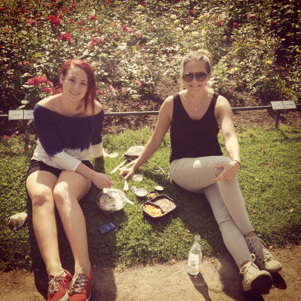Lunch i parken. Det här med att minska på mejeriprodukter… Väldigt svårt. När man annars är van att lassa på med fetaost på allt.