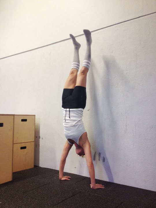 Jag håller just nu också på att lära mig att stå på händer. Har du något tips? 🙂 Jag gör så att jag går upp mot vägen med fart, men om jag tar för mycket fart/kraft och råkar slå i fötterna i väggen så viker sig nästan armarna så att jag ramlar omkull. När detta händer blir jag lite rädd och tar därför alldeles för lite fart ca 5-6 gånger innan jag hittar rätt mängd kraft. Sen börjar det om igen med att jag blir modig och råkar ta för mycket kraft och då blir rädd 🙂